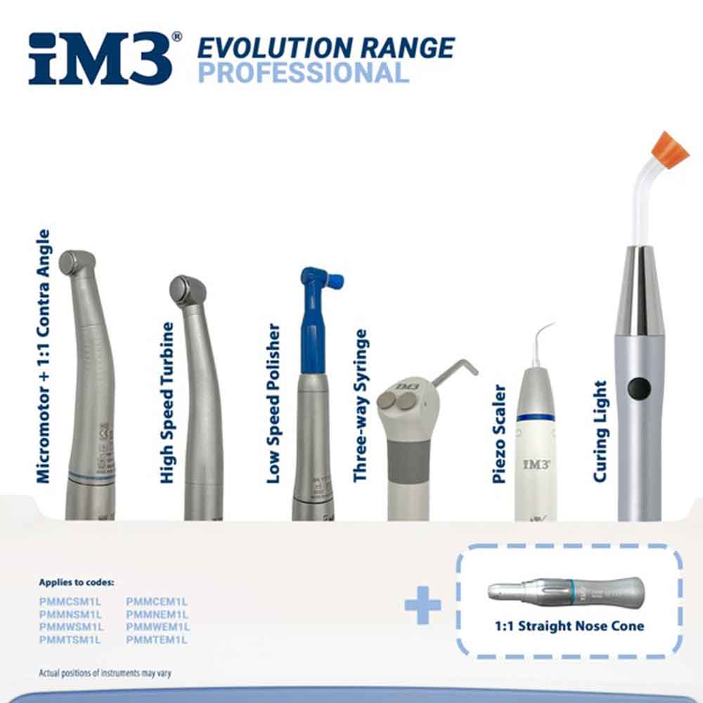 Warranties: iM3 Evolution Range Units have a 3 year parts warranty. All handpieces have a 1 year warranty.
