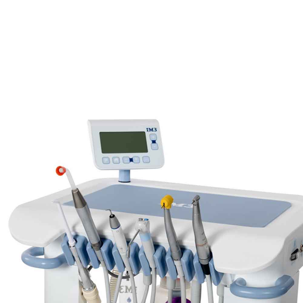 Mounting Options: All units in the iM3 Evolution Range can be supplied as mobile carts (with or without in-built compressors), or wall-mounted for the ultimate dental working environment. Please note that wall arm options do not include a compressor.